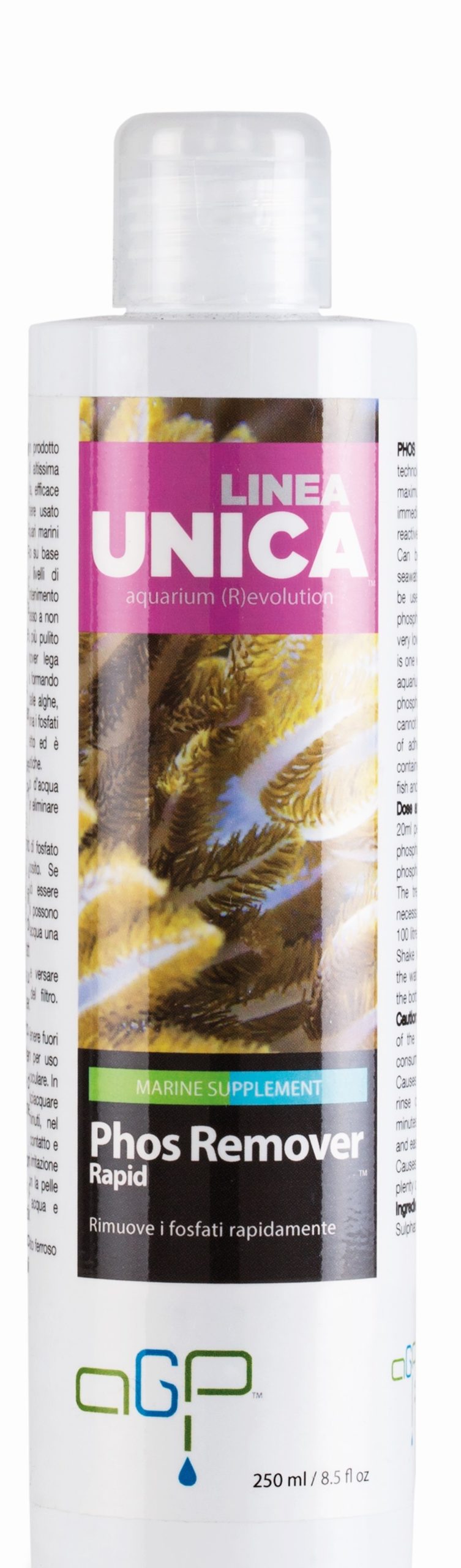 PHOS REMOVER RAPID è un prodotto tecnologicamente avanzato, di altissima qualità, per aiutare nella rimozione rapida, efficace e sicura dei fosfati in acquari marini. Può essere usato su base continuativa per mantenere i livelli di fosfato sotto controllo. Il mantenimento del livello di fosfati da molto basso a non misurabile assicura un acquario più pulito ed incontaminato.