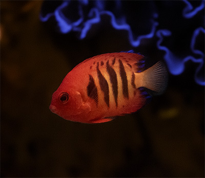 Il Flame Angel è anche un pesce intelligente e curioso: spesso riconosce chi lo nutre e diventa un vero protagonista della vasca!