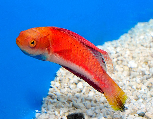 Il maschio adulto sfoggia una combinazione armoniosa di rosa, magenta, giallo e riflessi violacei, con pinne elegantemente allungate che diventano ancora più intense durante le fasi di eccitazione o corteggiamento. Una bellezza mai eccessiva, ma estremamente fine e “pulita”, ideale per reef curati ed eleganti.
